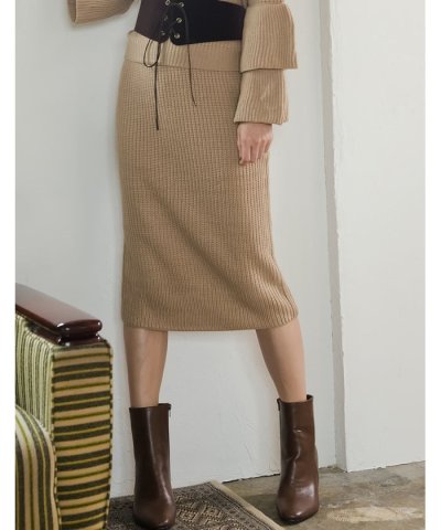 ざっくり編んだ柔らかいニットが程よくフィットする、女性らしいシルエットのスカート。